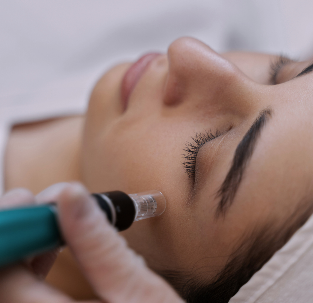Anschließend erfolgt das eigentliche Microneedling mit einem professionellen Gerät, das präzise und gleichmäßige Mikrokanäle erzeugt. Die Intensität wird individuell angepasst und orientiert sich an Hauttyp, Behandlungsziel und Verträglichkeit.
